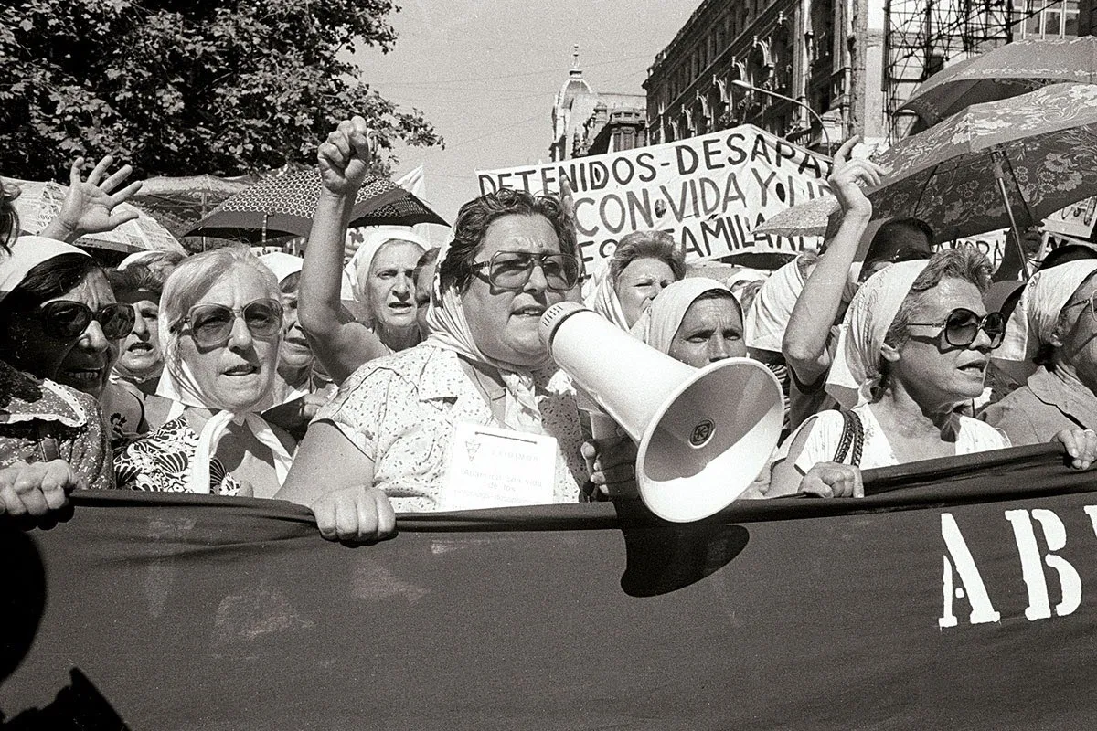 Dicho esto, vemos a Hebe en las fotos en blanco y negro, enfrentando a la policía durante la dictadura, interpelando a voz en cuello a las fuerzas represivas, caminando las mil marchas, son algunas de las imágenes que recorren nuestra memoria histórica y nuestra subjetividad política.